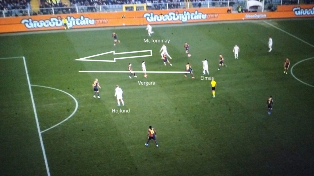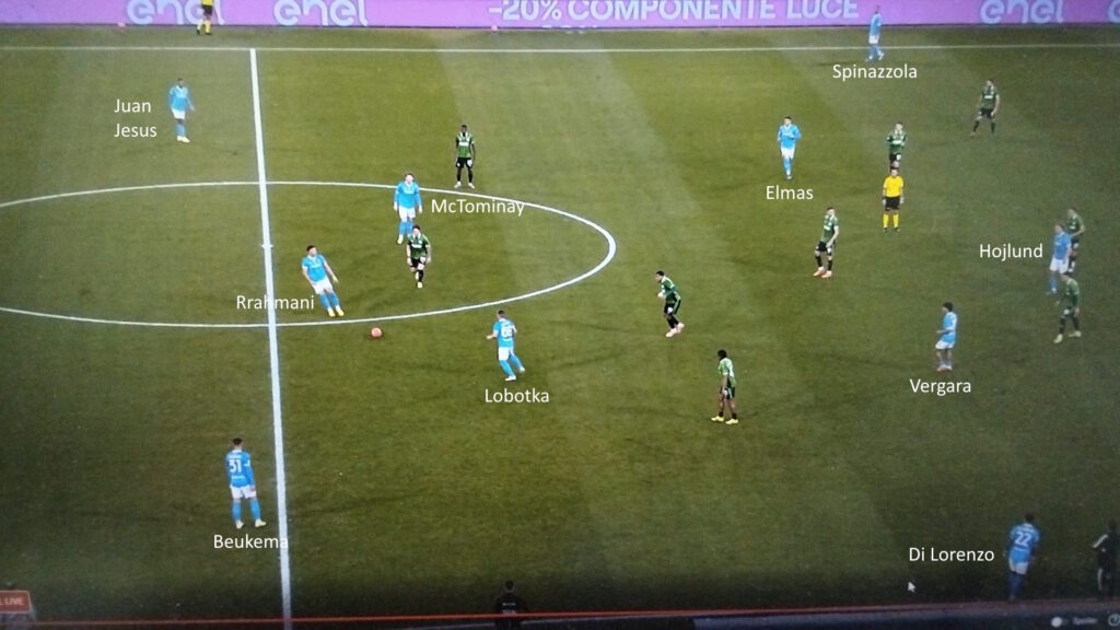 Sarà una partita dura anche per Ndicka che deve vincere la sfida con Hojlund. Bravissimo a prendere vantaggio nel corpo a corpo quando deve far uscire il Napoli dalla zona difensiva, veloce sulle palle dietro la linea difensiva e abile nel gioco al volo sui cross.