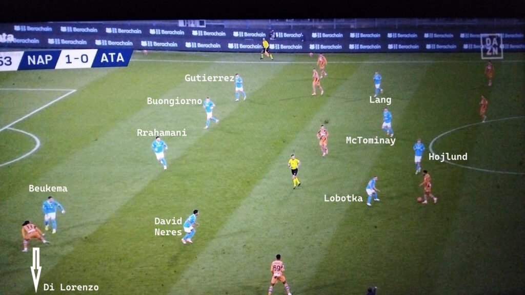 Tactically, the first and most important piece of advice is to avoid counterattacks. Especially when they attack from their right with Di Lorenzo and David Neres (primarily left-footed), where they create more play and are more dangerous. On our left flank, Pellegrini should double up alongside Wesley and Hermoso. Also be careful with Lang, who Mancini will have to work hard to protect.